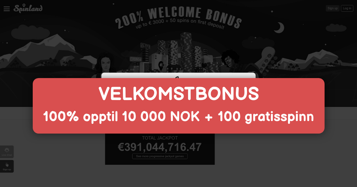 Spinland tilbyr en velkomstpakke for nye spillere med bonus og gratis spinn fordelt over de første innskuddene. Per gjeldende informasjon: opptil 35 000 kr + 200 gratisspinn fordelt slik: